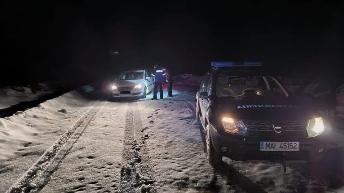 Intervenție a jandarmilor montani din Șugag pentru salvarea unui bebeluș, aflat cu părinții săi într-o mașină rămasă înzăpezită