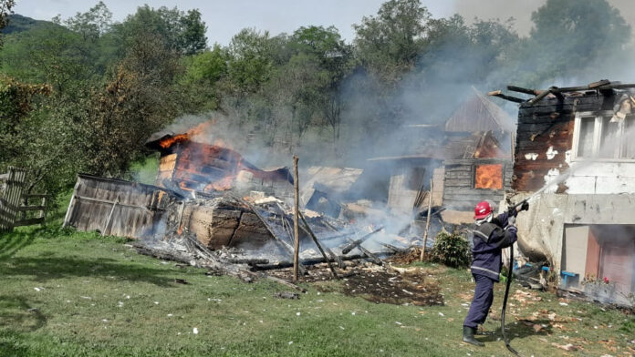 Intervenție a pompierilor militari din Câmpeni, SVSU Sălciua și SVSU Baia de Arieș la Valea Largă, pentru stingerea unui incendiu izbucnit la o locuință și la două anexe gospodărești