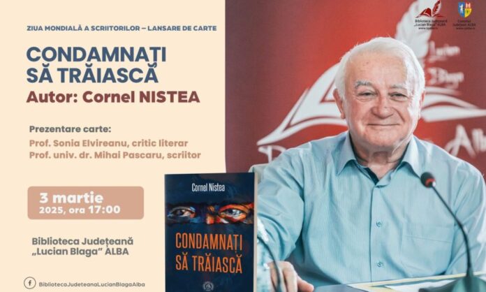 Lansare de carte la Alba Iulia, de Ziua Mondială a Scriitorilor: Cel mai recent volum al lui Cornel Nistea, prezentat publiculuiCu prilejul Zilei Mondiale a Scriitorilor, luni 3 martie 2025, de la ora 17:00, sala de lectură a Bibliotecii Județene „Lucian Blaga” Alba va găzdui lansarea celui mai recent volum de proză semnat de scriitorul Cornel Nistea și intitulat „Condamnați să trăiască”.Volumul va fi prezentat de două nume sonore din lumea criticii literare din județul…