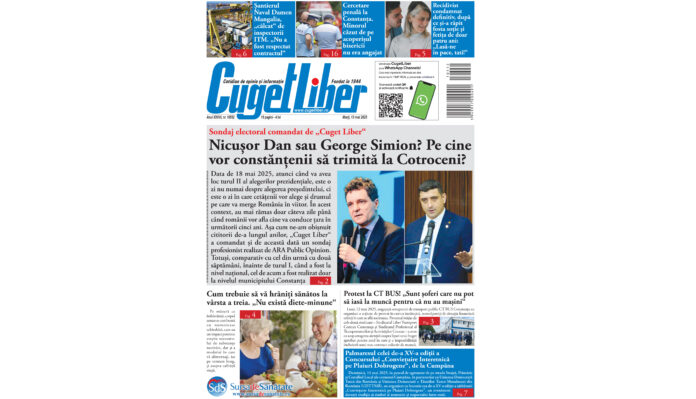 Nu ratați ediția de MARȚI, 13 MAI a ziarului CUGET LIBER, cel mai longeviv cotidian din Constanța!