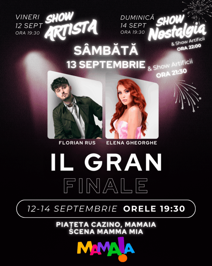 În perioada 12 – 14 septembrie 2025, Piațeta Cazino Mamaia se transformă în centrul distracției, aducând pe scena Mamma Mia artiști de top, show-uri tematice, artificii spectaculoase și o expoziție dedicată iubitorilor de mașini de lux – Grand Rally Tour – Cars&Boats.Vineri, 12 septembrie, începând cu ora 19:30, startul distracției este dat de Show Artista, un spectacol vibrant ce aduce pe scenă ritmuri moderne și atmosferă de festival.Sâmbătă, 13 septembrie, scena…