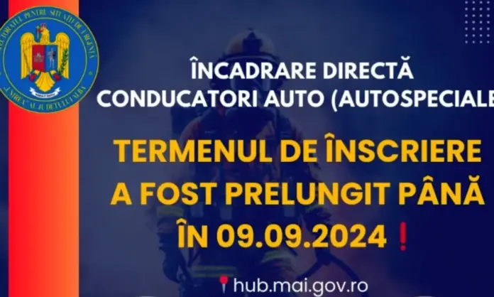 9 septembrie 2024, ora 12.00 este noul termen de transmitere a dosarului complet pentru ocuparea unuia dintre locurile vacante de conducători auto (autospeciale) din cadrul ISU Alba.