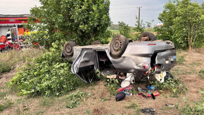 Persoană rănită, după ce s-a răsturnat cu un autoturism în afara DN 1, între Sebeș și Răhău