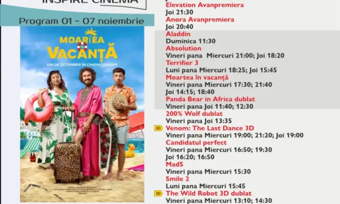 Programul Inspire Cinema Alba Iulia, pentru perioada 1-17 NOIEMBRIE 2024. Ce filme vor rula la cinematograful din centrul comercial Alba Mall
