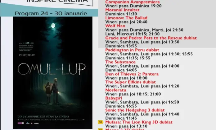Programul Inspire Cinema Alba Iulia, pentru perioada 24 – 30 IANUARIE 2025. Ce filme vor rula la cinematograful din centrul comercial Alba Mall