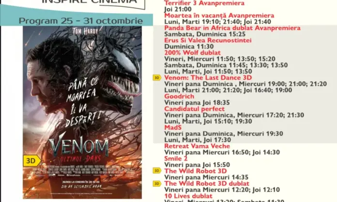 Programul Inspire Cinema Alba Iulia, pentru perioada 25 – 31 OCTOMBRIE 2024. Ce filme vor rula la cinematograful din centrul comercial Alba Mall
