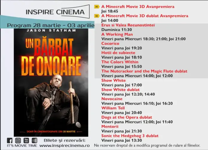 Programul Inspire Cinema Alba Iulia, pentru perioada 28 MARTIE – 3 APRILIE 2025. Ce filme vor rula la cinematograful din centrul comercial Alba Mall