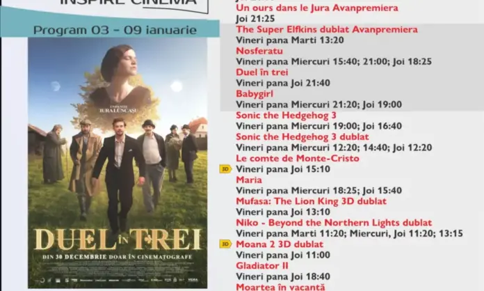Programul Inspire Cinema Alba Iulia, pentru perioada 3 – 9 IANUARIE 2025. Ce filme vor rula la cinematograful din centrul comercial Alba Mall