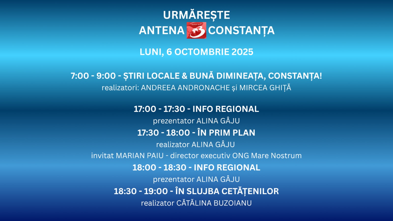 Programul zilei de luni, 6 octombrie, la Antena 3 Constanța