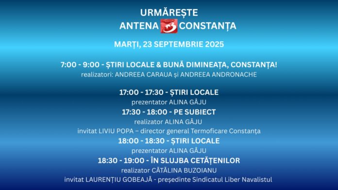 Programul zilei de marți, 23 septembrie, la Antena 3 Consta