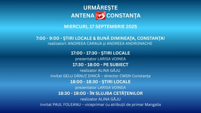 Programul zilei de miercuri, 17 septembrie, la Antena 3 Constanța