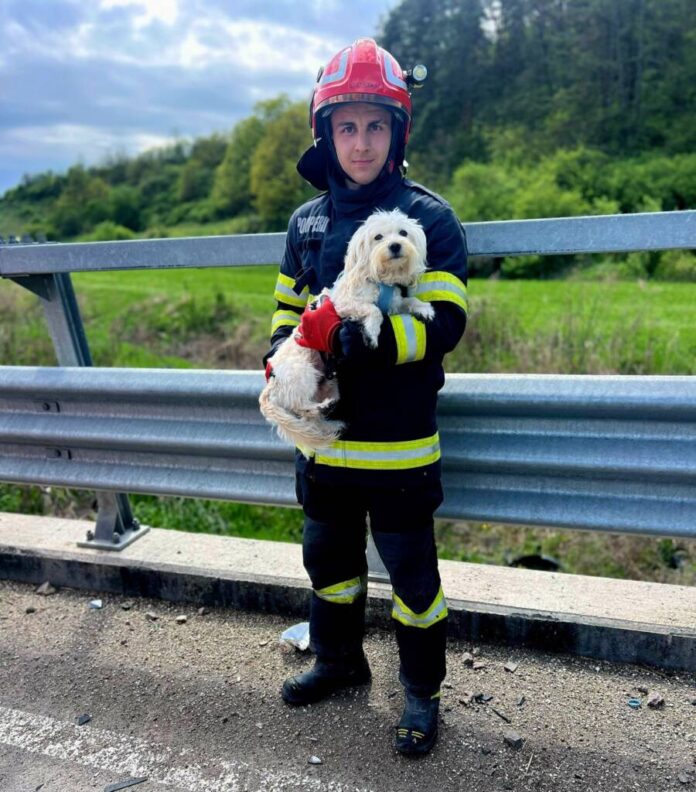 Salvatorii au intervenit și au ajutat un cățel speriat, care a fost implicat într-un accident rutier împreună cu stăpânii lui – Monitorul Expres