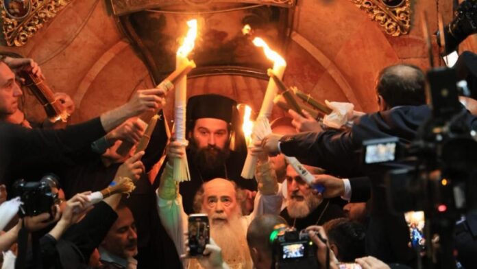 Sfânta Lumină s-a aprins la Mormântul Învierii Domnului