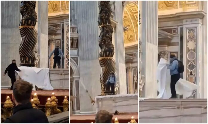 Incident grav de vandalism în Bazilica Sfântul Petru din Vatican. Un român a urcat pe altarul central și a aruncat la pământ șase candelabre din secolul al XIX-lea, cu o valoare estimată la 30.000 de euro. El a fost reținut de agenții de securitate.Scenele s-au petrecut în timpul programului de vizitare a bazilicii, sub privirile numeroșilor turiști prezenți, care au filmat momentul cu telefoanele mobile. După ce a aruncat candelabrele, românul a îndepărtat pânza de…