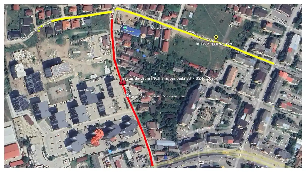 Strada Emil Racoviță, pe sectorul dintre străzile Republicii și Petre Ispirescu, va fi închisă circulației auto pentru lucrările de asfaltare, în perioada 3-5 noiembrie. Anunțul a fost făcut de Primăria Alba Iulia.