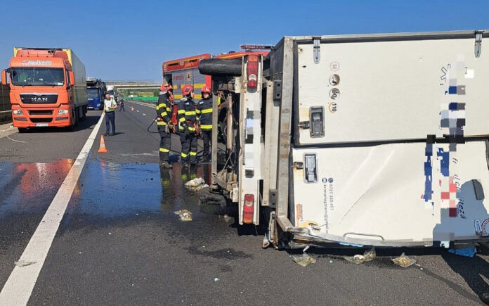 Trafic îngreunat pe Autostrada A1, pentru mai multe zeci de minute, după ce o autoutilitară s-a răsturnat pe sensul de mers Sebeș-Orăștie