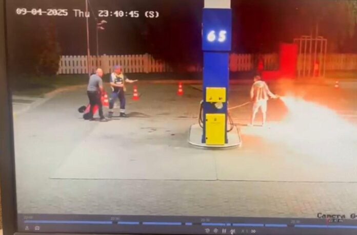 Un bărbat băut a dat foc la o pompă de