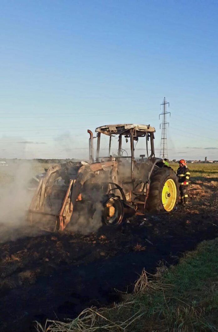 Un tractor s-a făcut scrum pe câmp, la IAS Mangalia