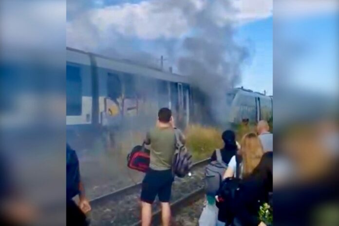 Un vagon de călători a luat foc! Pompierii intervin de urg