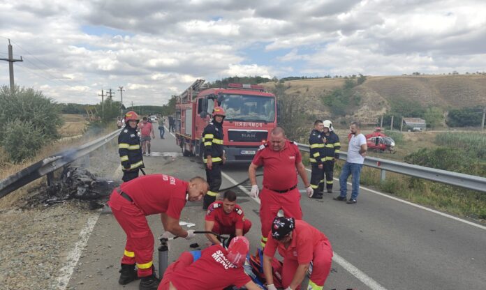 UPDATE Accident rutier, urmat de incendiu, la Rasova. Două