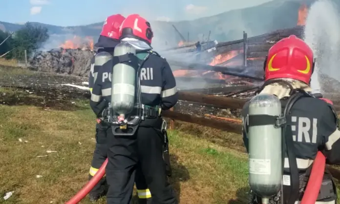 UPDATE VIDEO | INCENDIU la un adăpost de animale din comuna Horea: Au ars 40 tone de fân și un vițel a murit