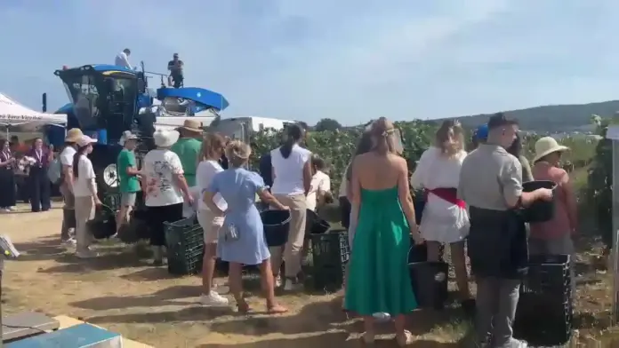 VIDEO | A început culesul viilor la Jidvei: Sute de oameni au intrat în vie. Concurs de cules struguri