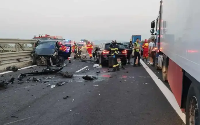 VIDEO | ACCIDENT pe Autostrada A1 Sebeș-Deva, în zona Simeria: 4 vehicule implicate, 6 persoane rănite, între care 2 minori. TRAFIC BLOCAT