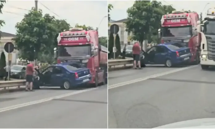 VIDEO | Accident rutier GRAV pe Calea Moților, în Alba Iulia: Un Logan luat din plin de un autocamion, la Micești