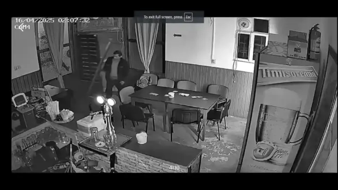VIDEO | Cârciumă din Teiuș, spartă în miez de noapte: Un necunoscut a tăiat lacătul și a smuls ușa din balamale