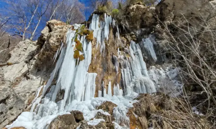 VIDEO: Cascada Pișoaia Albii, de la Sohodol, o minune a naturii din Munții Apuseni, după câteva nopți și zile cu ger persistent