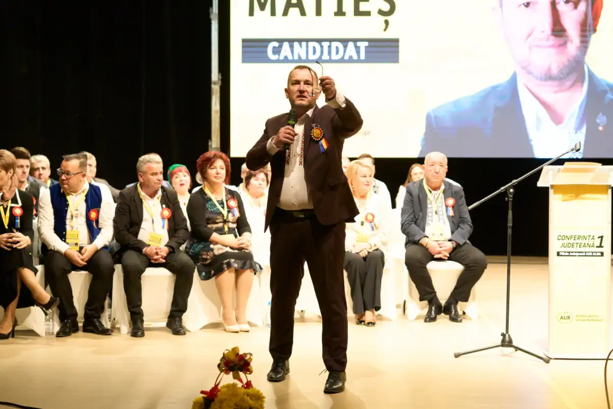 VIDEO | Deputatul Călin Matieș, ales președinte al AUR Alba, la primele alegeri organizate de filiala județeană. L-a avut contracanditat pe Cristian Crișan.