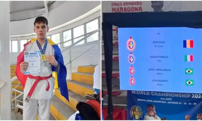 Sportivul David Balea din comuna Bistra, județul Alba, a dus tricolorul românesc pe cea mai înaltă treaptă a podiumului la Campionatul Mondial de Karate IKU, desfășurat în perioada 24-27 octombrie 2024 la Buenos Aires, în Argentina.