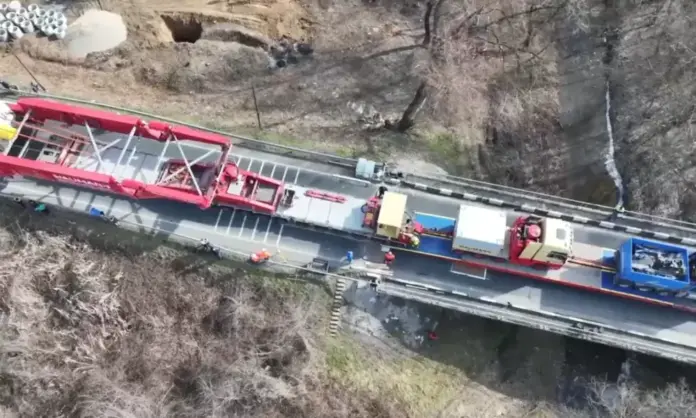 VIDEO | Mega-transportul agabaritic spre Mintia, un ultim „hop” depășit cu succes: Poduri traversate cu ajutorul tehnologiei flyover