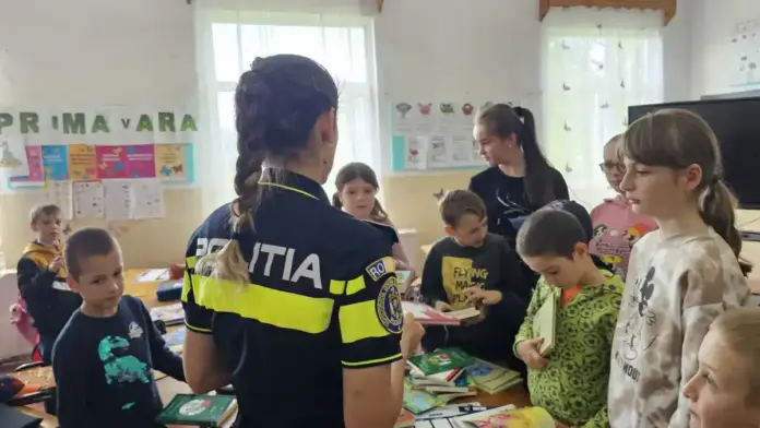 VIDEO | Polițiștii au donat cărți pentru elevii Școlii Primare ,,Învățător Neag Viorel” din satul Trifești, comuna Horea