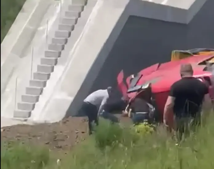 VIDEO | Pompier de la ISU Alba, EROU în timpul liber: A intervenit la un accident pe Autostrada A3, unde o autoutilitară s-a răsturnat în afara carosabilului