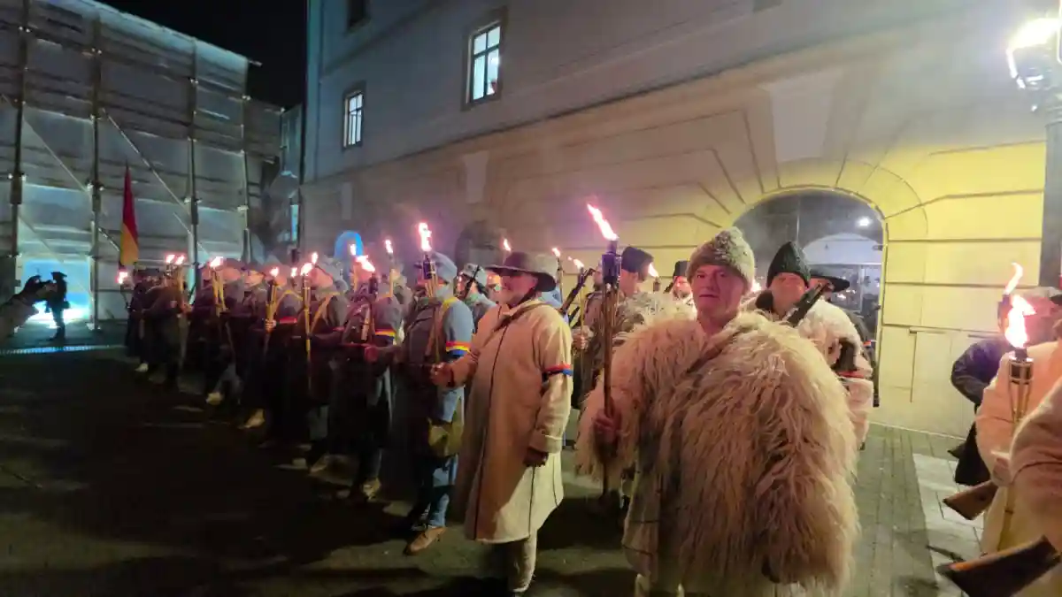 Reconstituire istorică și „retragere cu torțe” spectaculoasă în Cetatea Alba Carolina, la sfârșitul zilei de 1 Decembrie 2025, în memoria eroilor neamului