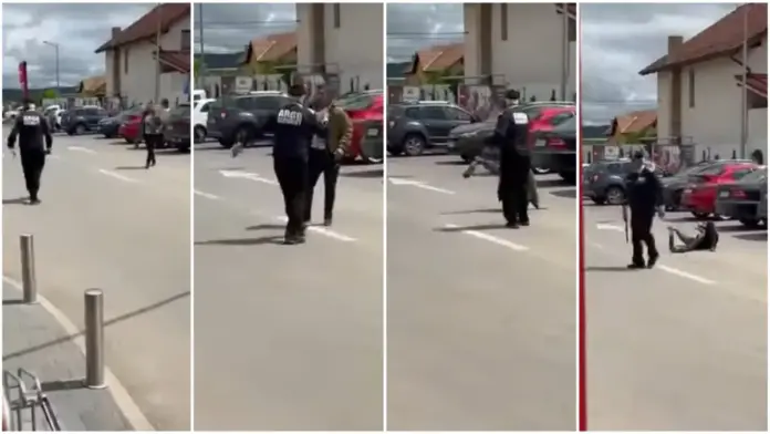 VIDEO | SCANDAL cu bătaie în parcarea unui supermarket din Alba Iulia: Bărbat băut, lovit un paznic cu bastonul