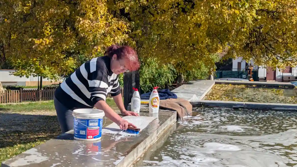 VIDEO | Spălatul rufelor și al covoarelor la pârâul din centrul comunei Rimetea, o tradiție pe cale de dispariție: ,,Și bunica și mama mea au folosit apa de aici”