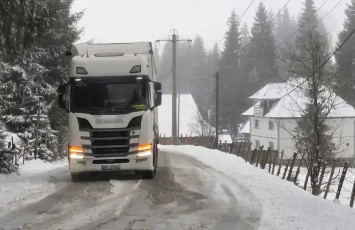 Este prăpăd în Apuseni, pe DN 75, unde circulația este îngreunată, mai ceva ca în toiul iernii, din cauza stratului de zăpadă depus pe carosabil.