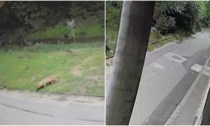 Șacal filmat pe străzile din Aiud: Sălbăticiunea surprinsă în goană după o pisică