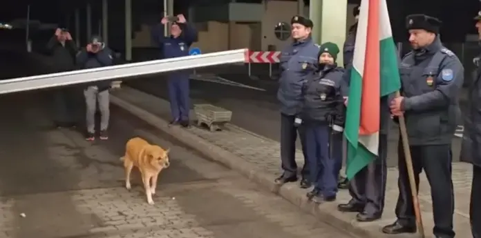 VIDEO | Un câine simpatic, vedeta unui moment istoric: A fost primul care a traversat granița la Vama Petea, la intrarea în Schengen a României. S-a strecurat pe sub barieră, în aplauzele polițiștilor de frontieră