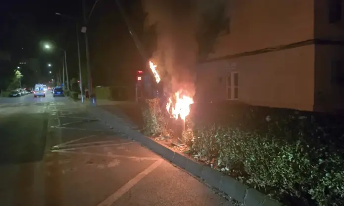 VIDEO | Un stâlp de iluminat public a luat foc pe strada Cloșca din Alba Iulia: Au intervenit pompierii